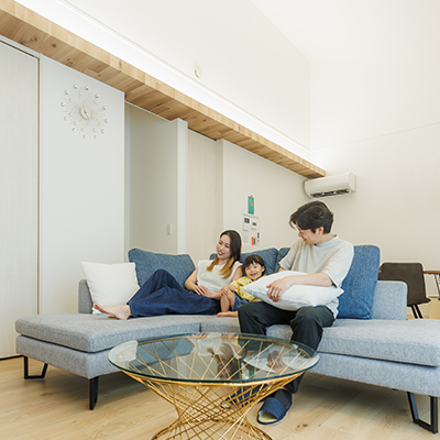 高い気密性、断熱性を実現する断熱材「アクアフォーム」、室内へ侵入する熱量を大幅に低減する「アクアシルバーウォールライト」など独自工法でオールシーズン快適な暮らしをご提供します。