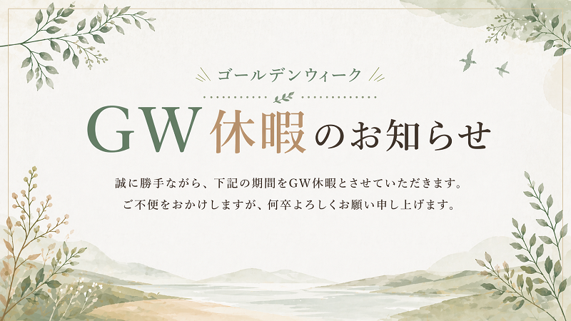 休業期間中にいただいたお問い合わせなどは、休業期間明けにご対応させていただく可能性がございます。