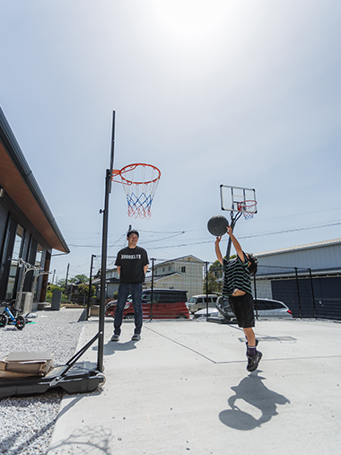 バスケと遊び心が共存する、エネルギッシュな躍動感あふれるお庭。
