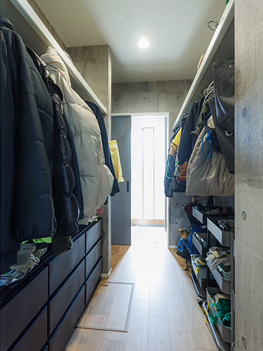 玄関から行き来可能なウォークインクローゼット。帰宅後、スムーズに着替えが可能。