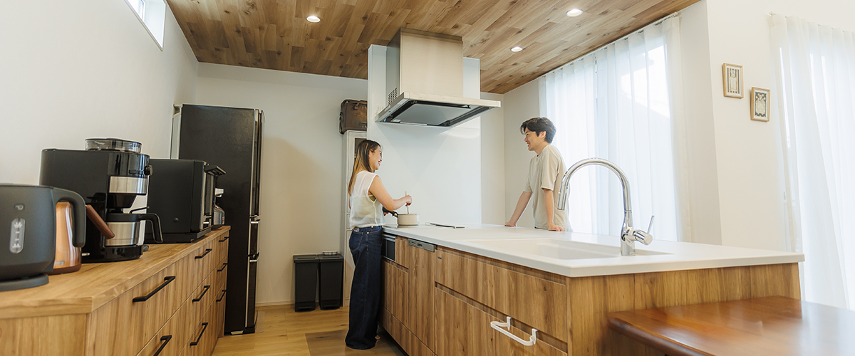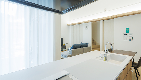 キッチンに立ちながら、リビングで過ごす家族の気配を感じられる距離感が、暮らしに安心感をもたらします。