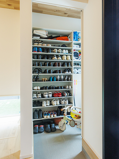 靴も遊び道具もまとめて収まる、使いやすい収納空間。